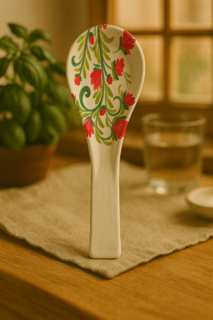 Il permet de poser proprement une cuillère, une spatule ou un ustensile en cours de cuisson, tout en ajoutant une touche artisanale à votre espace.